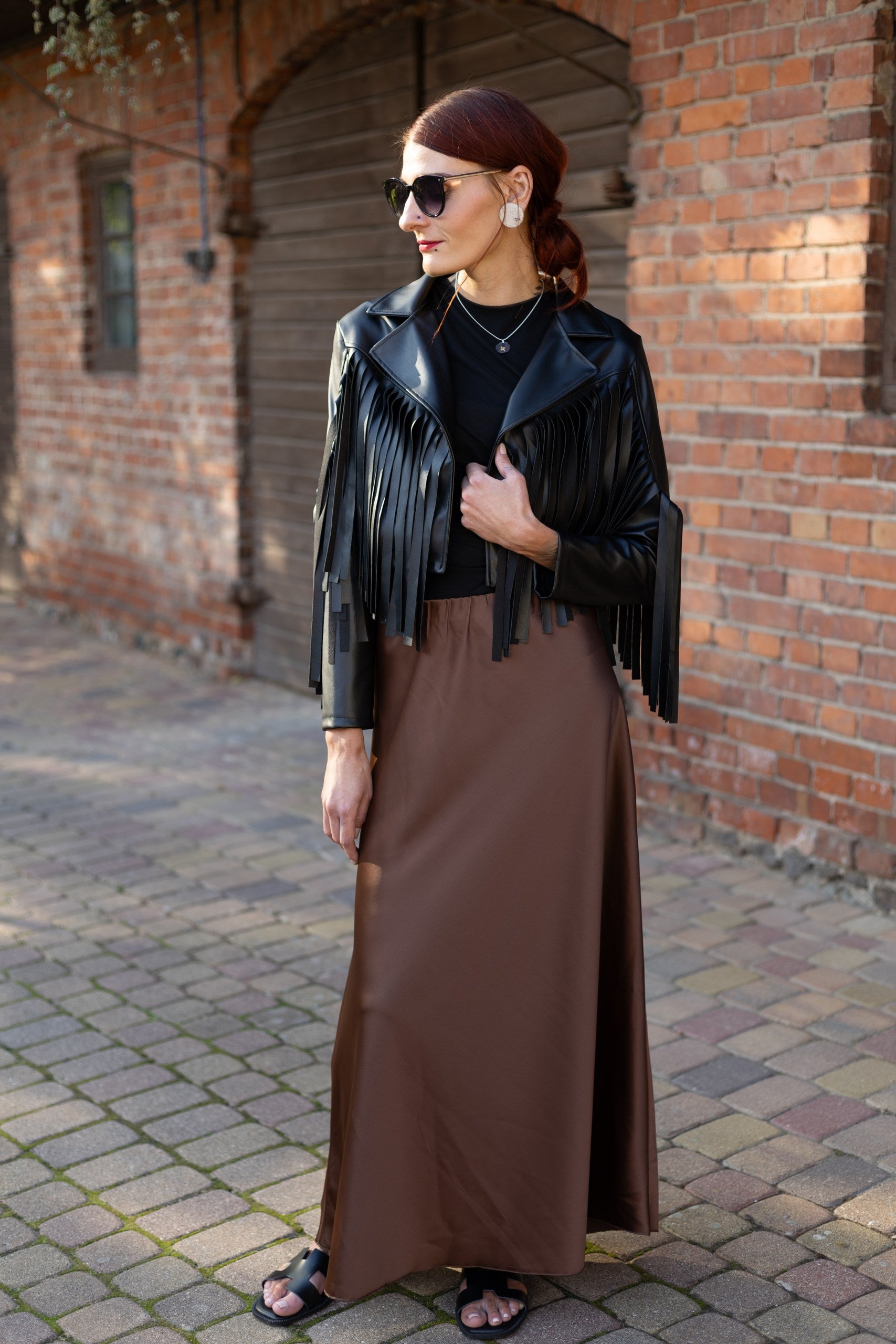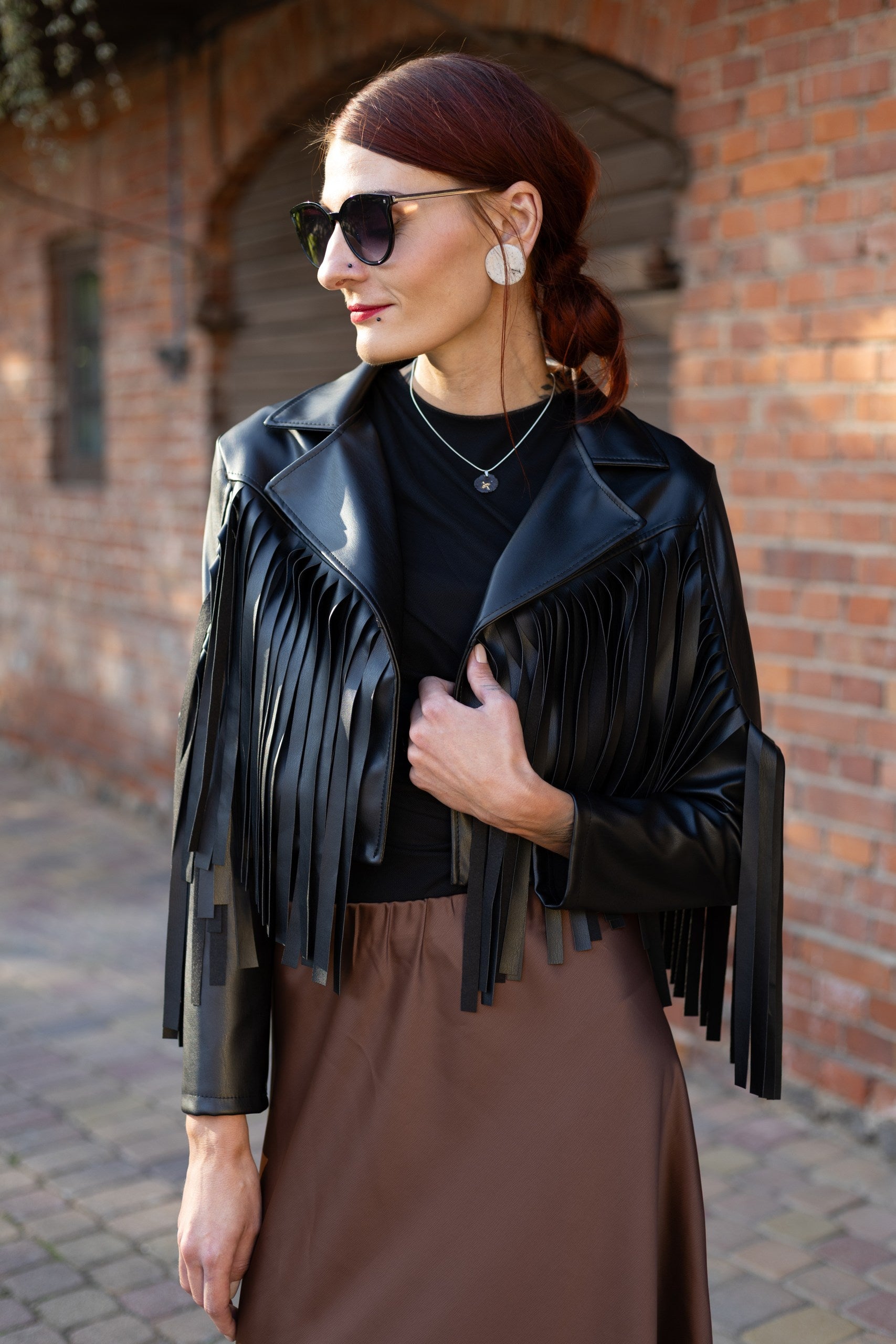 Mīksta un stilīga jaka ar skarām - melnā krāsā. Materiāls patīkams, nav biezs. Derēs S-M izmēram. 60% poliesters, 40% poliuretāns.