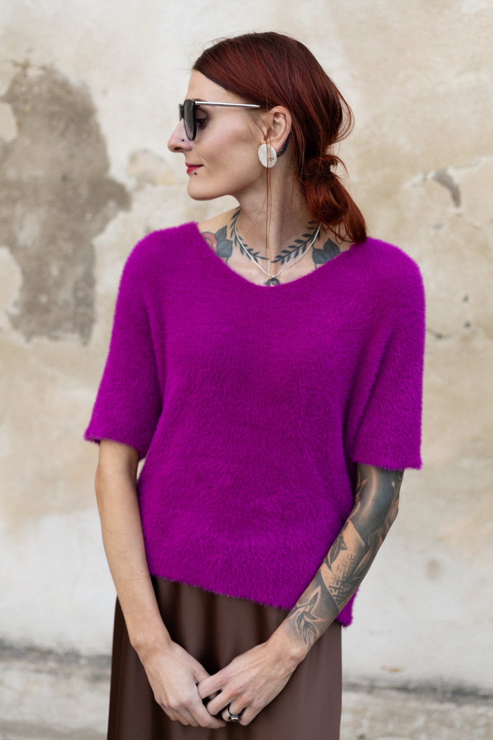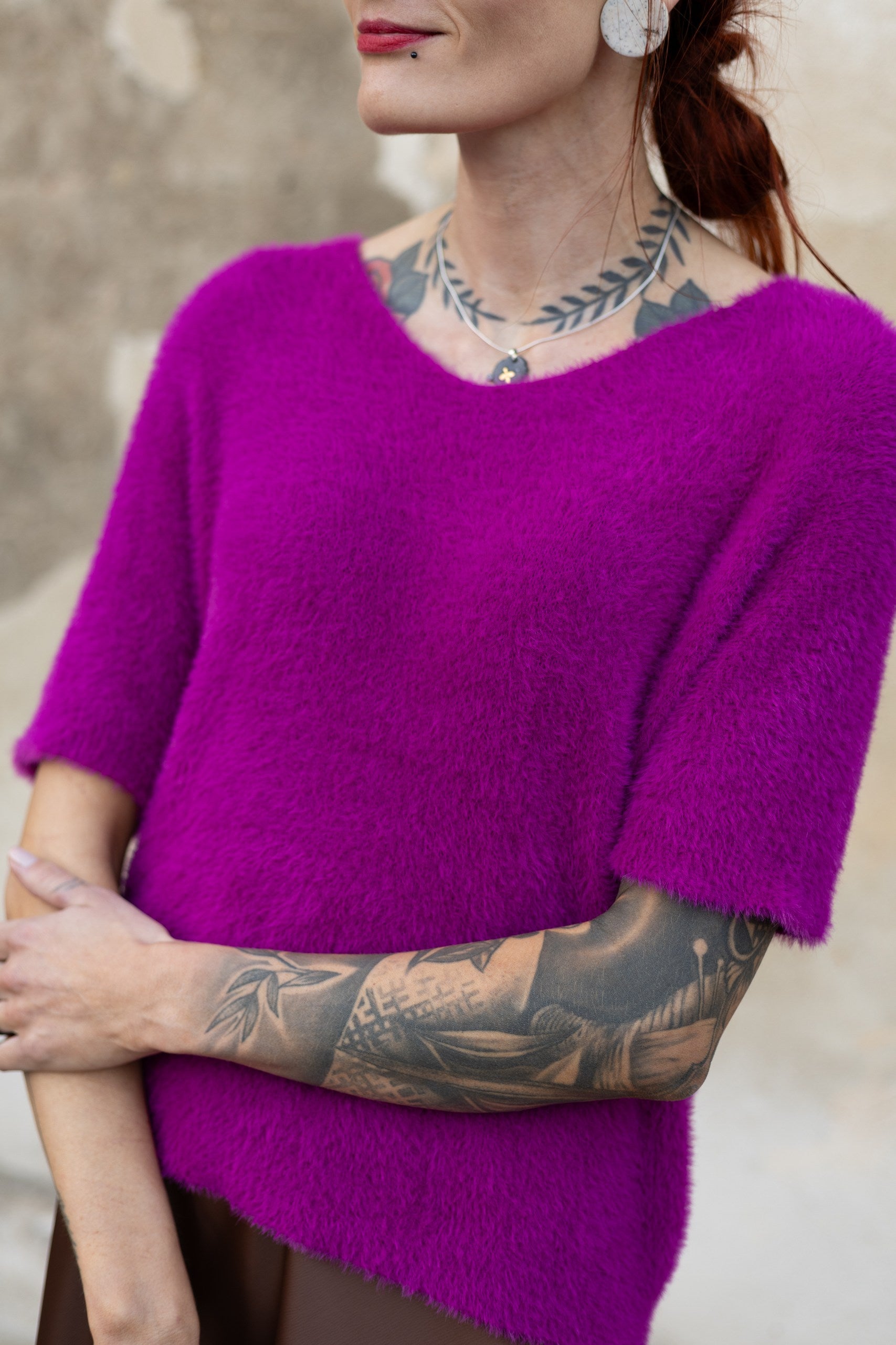 Mīksts džemperis ar pusgarām rokām - violetā tonī. Derēs S-L izmēram. 100% neilons.