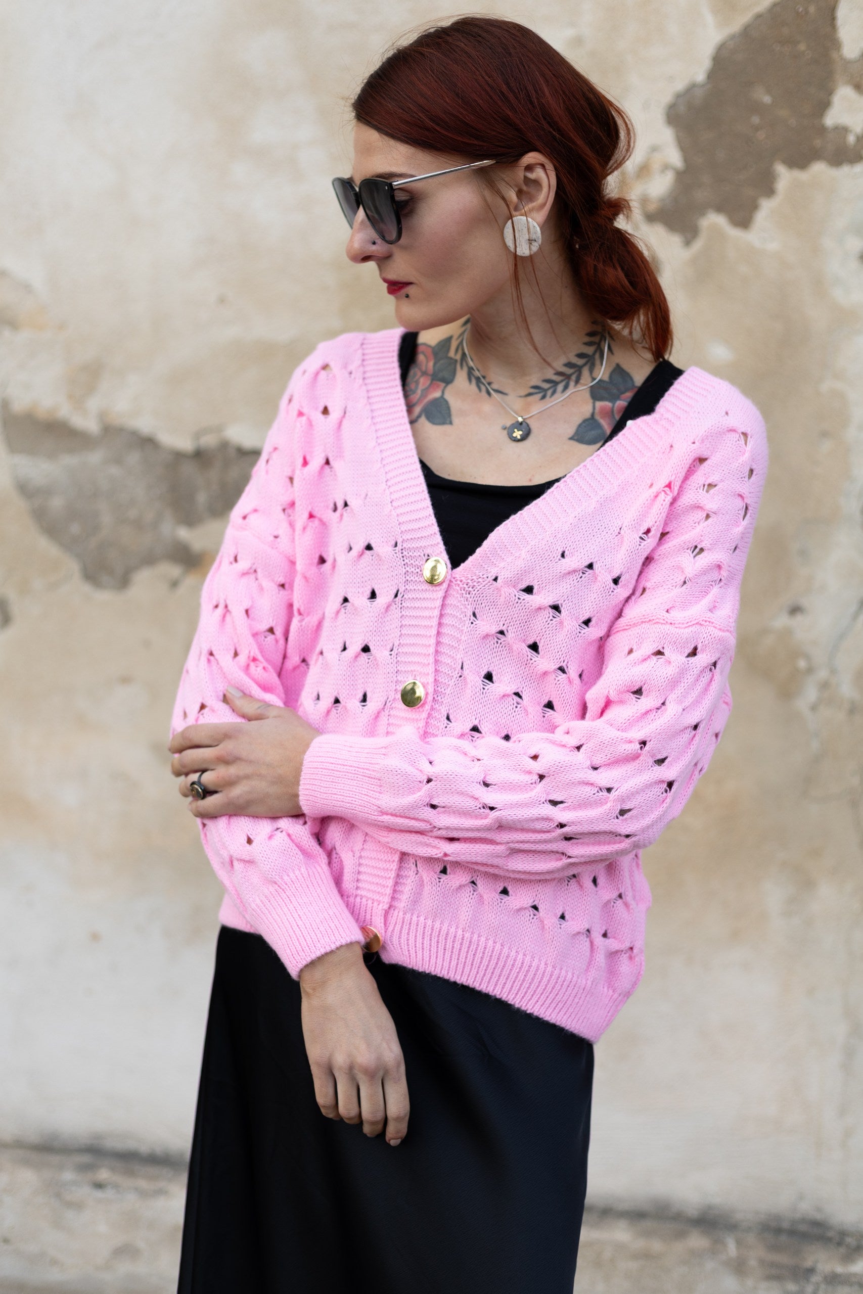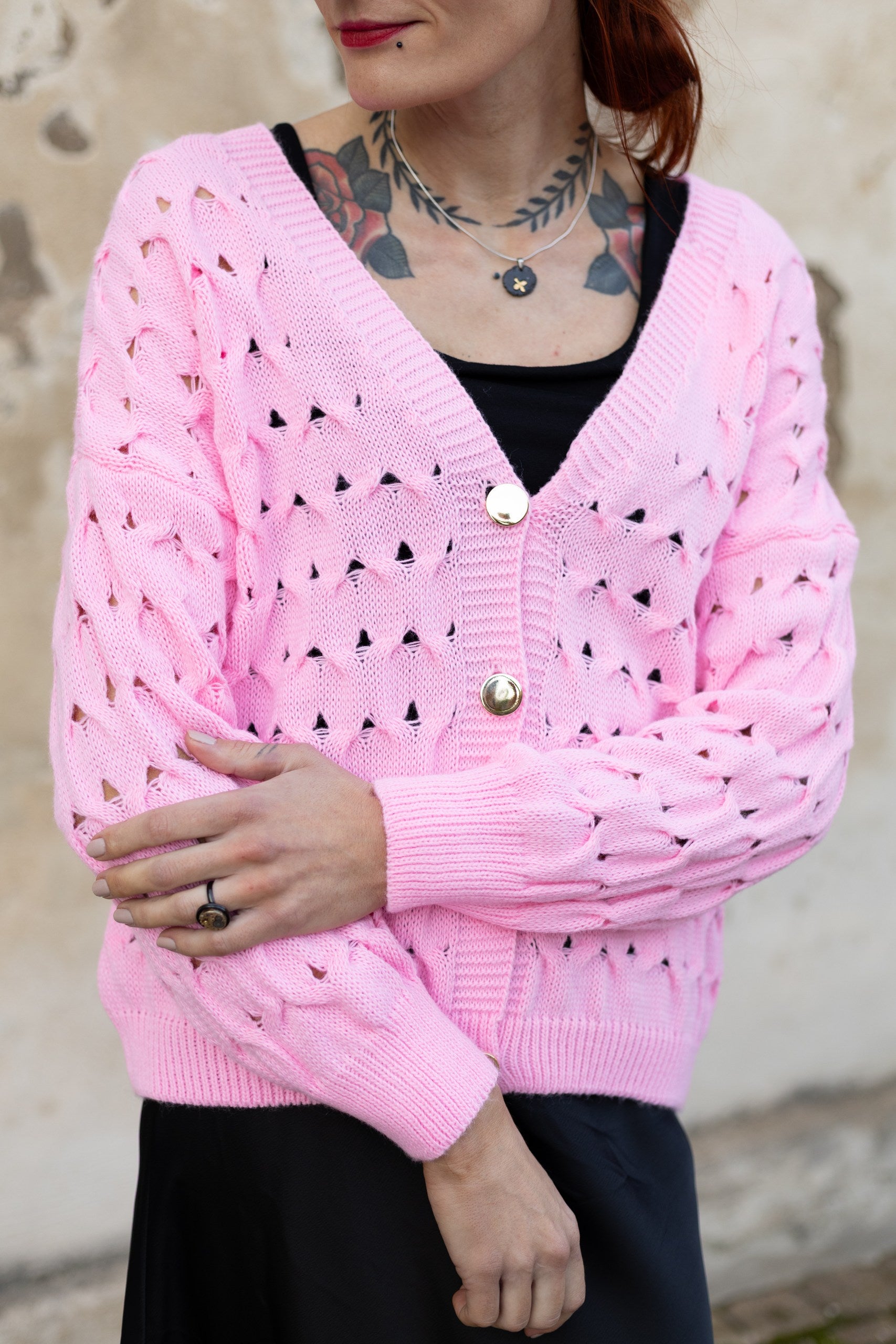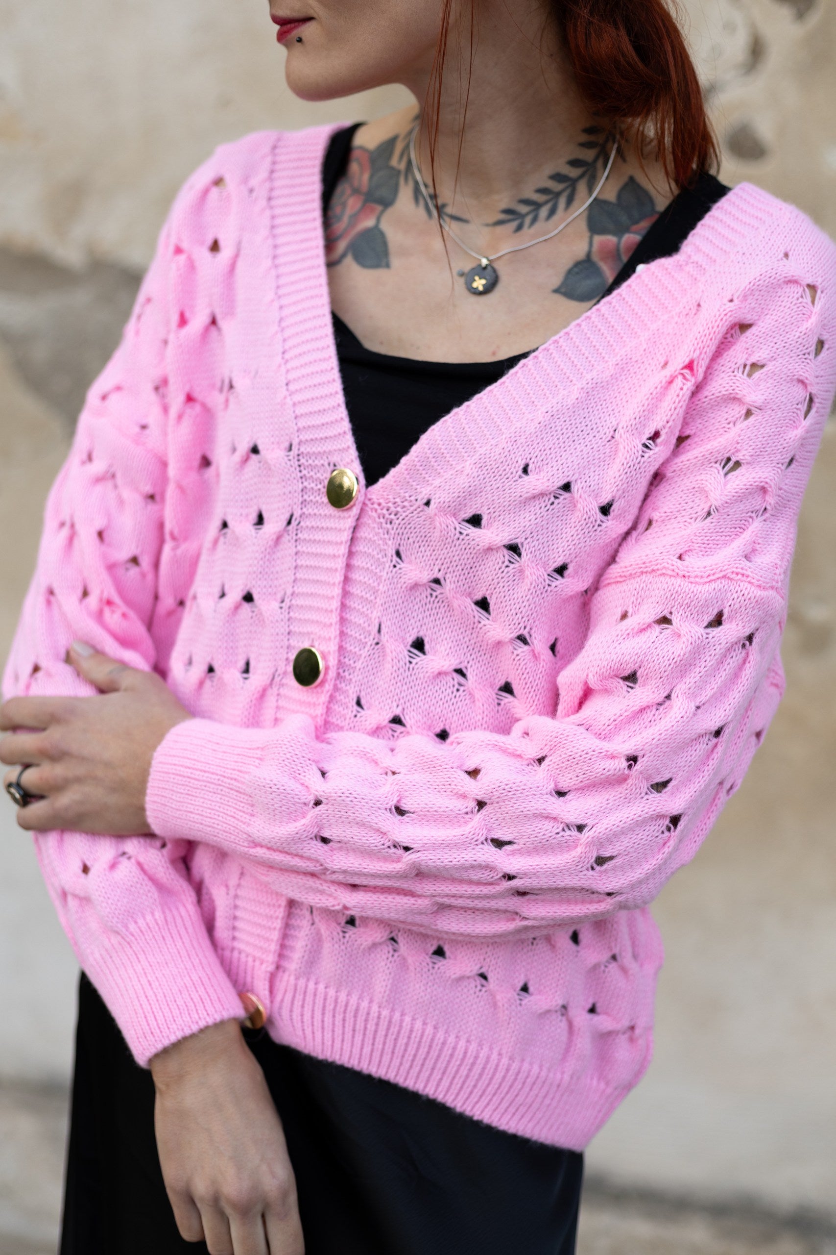 Jaciņa ar podziņām - rozā. Derēs S-L izmēram. 100% akrils.
