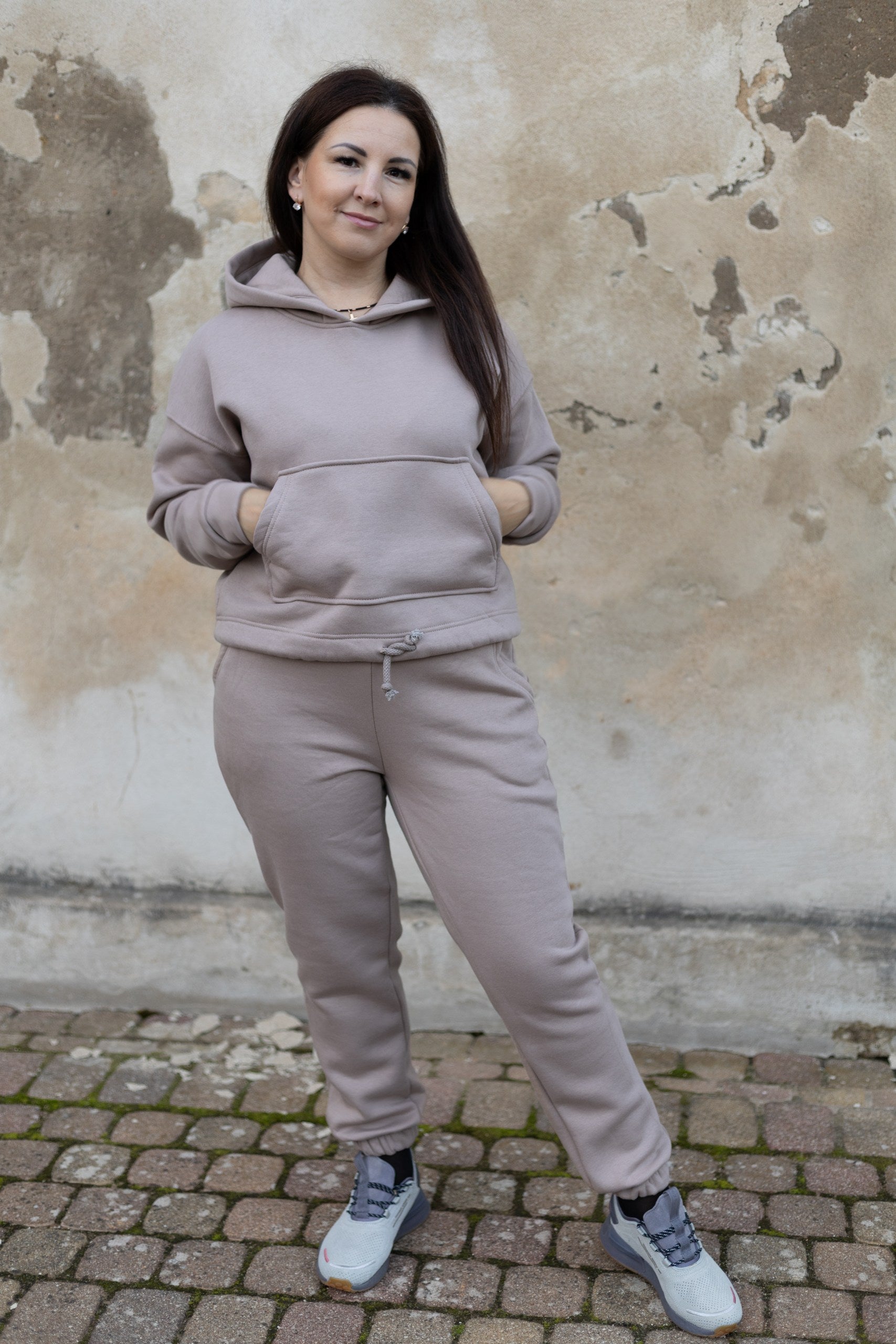 Kokvilnas komplekts brīvajam laikam bēšā tonī. Derēs S-L izmēram. 90% kokvilna, 10% elastāns.