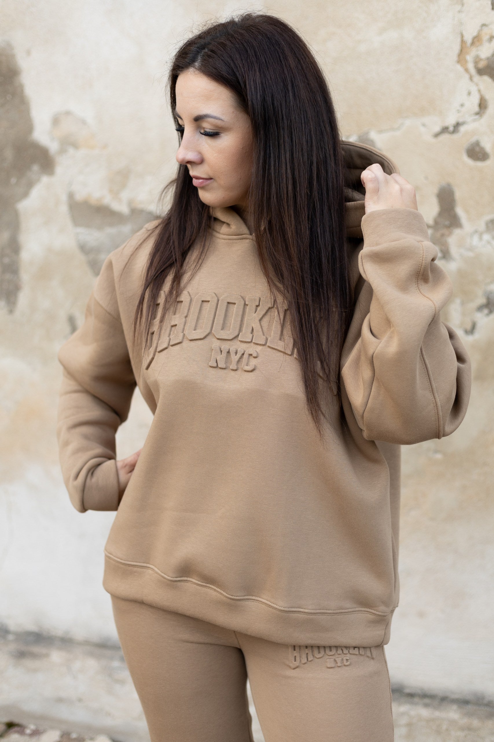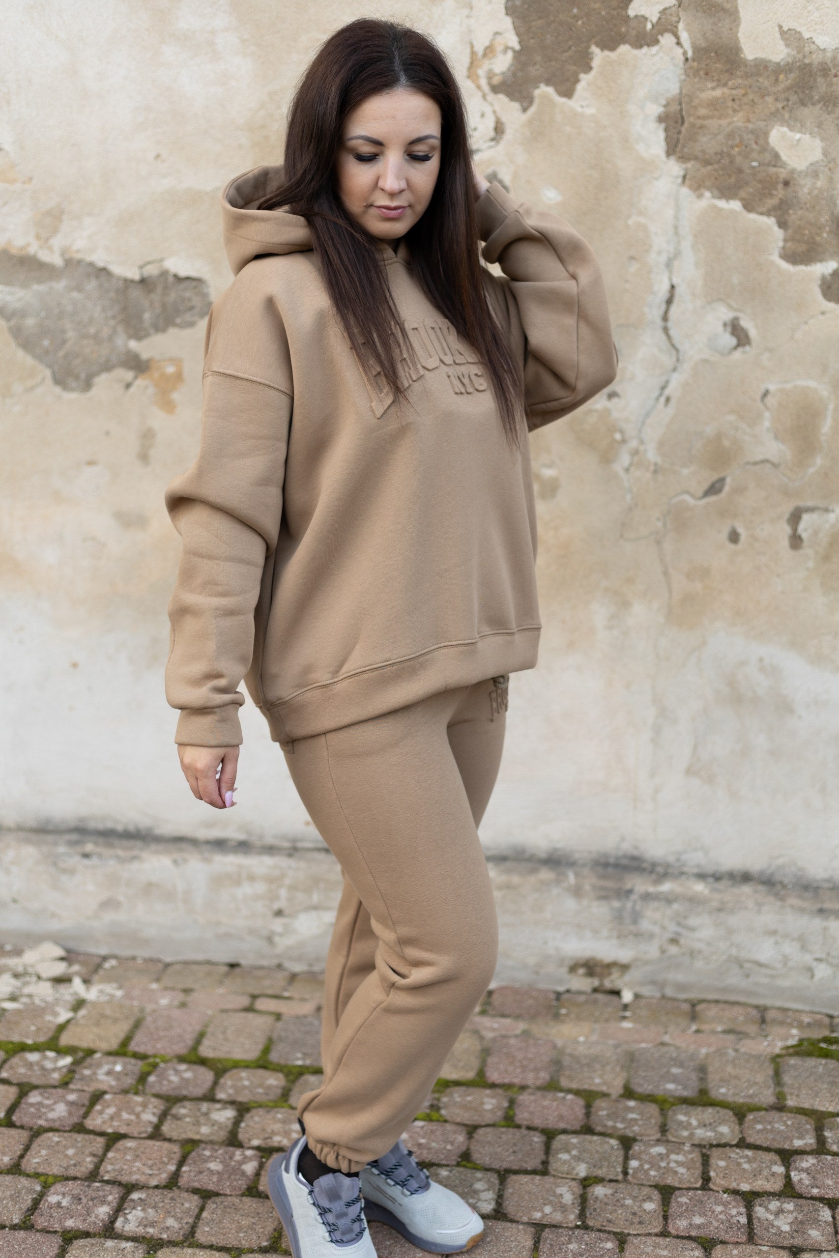 Kokvilnas komplekts brīvajam laikam brūnā tonī. Derēs S-XL izmēram. 90% kokvilna, 10% elastāns.